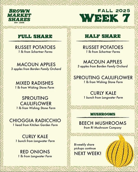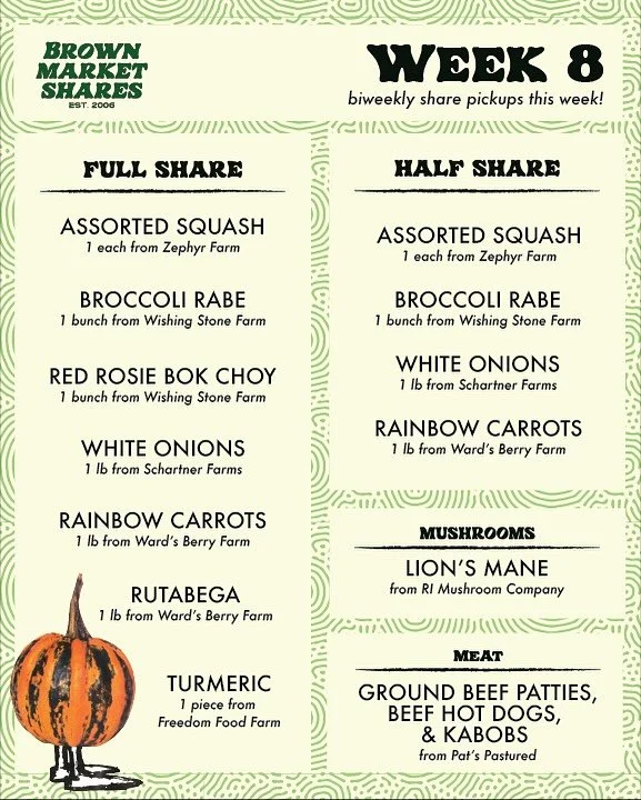 We offer Brown students, faculty, and staff the chance to support local agriculture and to learn about farming and seasonal produce. In this sense, Market Shares creates the opportunity for them to make a political statement through the purchase of their food. Along with other on-campus initiatives as well academic courses, our program fosters a community of active and engaged eaters on Brownβs campus.