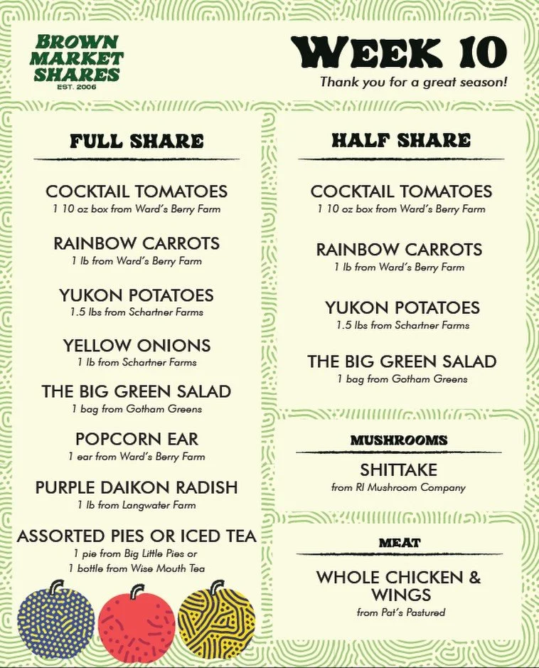 We offer Brown students, faculty, and staff the chance to support local agriculture and to learn about farming and seasonal produce. In this sense, Market Shares creates the opportunity for them to make a political statement through the purchase of their food. Along with other on-campus initiatives as well academic courses, our program fosters a community of active and engaged eaters on Brownβs campus.